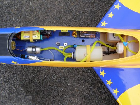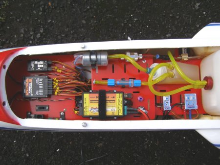 The insides of the Harpoon. Robert has fitted it with Spektrum 2.4Ghz using the AR9100 which has dual battery inputs and 4 receivers with a data log. |